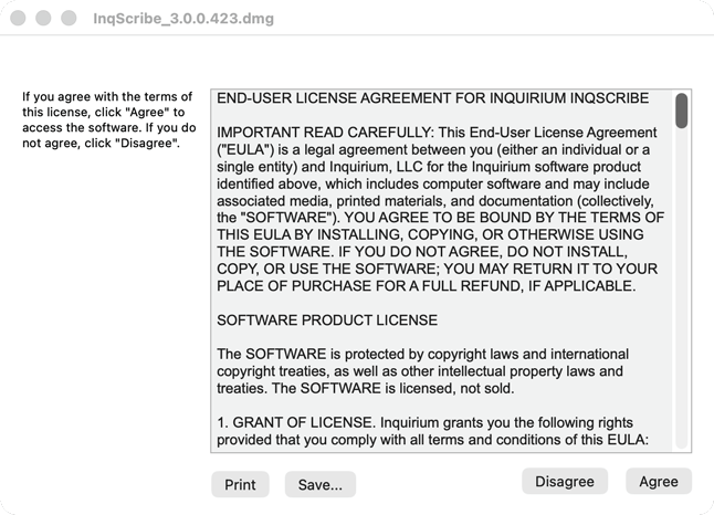 After installation feel free to "eject" and delete the InqScribe installer