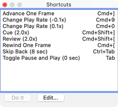 There are two highly useful shortcuts that InqScribe provides by default: Toggle Pause and Play and Skip Back.